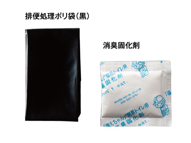 • 内容物:排便処理ポリ袋 1 枚、消臭固化材 1 個
